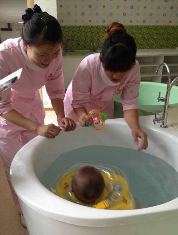 母嬰護理學員做嬰兒游泳工作