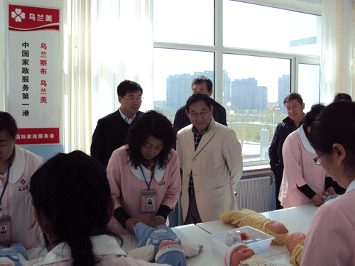 自治區(qū)人社廳領(lǐng)導(dǎo)一行來烏蘭美國際家政服務(wù)港視察