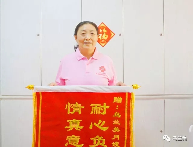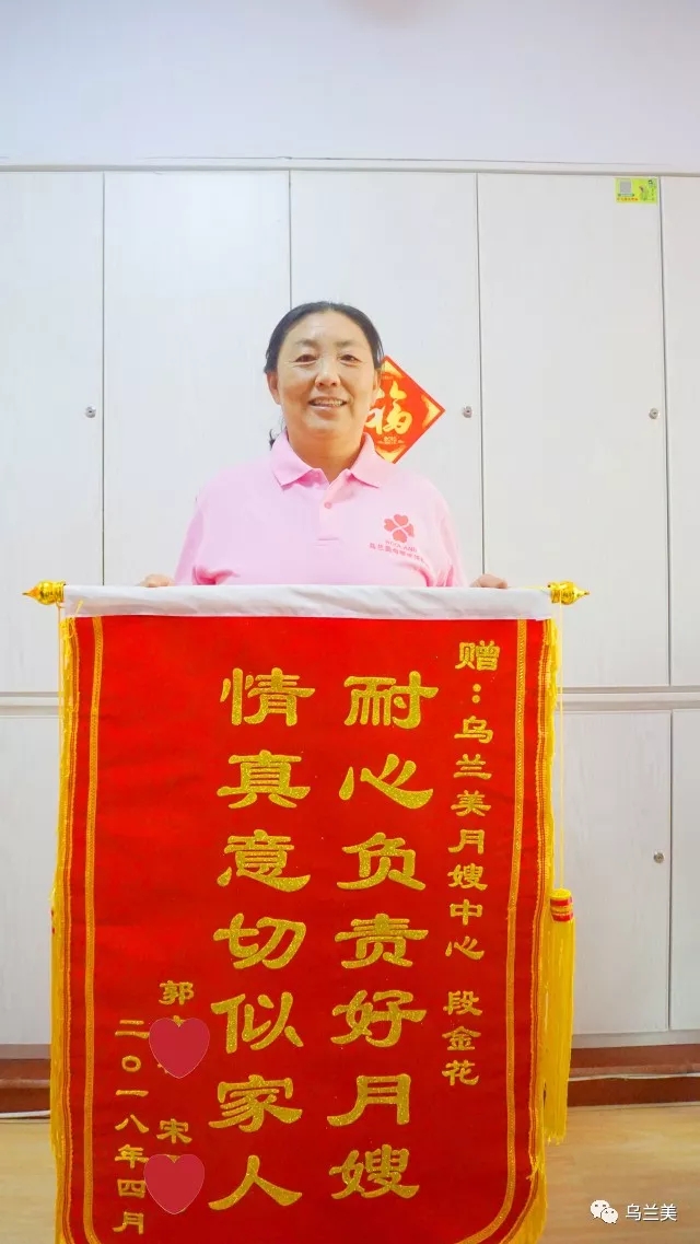 “我們清楚烏蘭美母嬰服務中心已經收到過很多面錦旗,但是這面不同!這是一面有含金量的錦旗,它不僅僅表達了我們對烏蘭美母嬰服務中心的謝意,更是表達對烏蘭美月嫂段金花的愛意!”